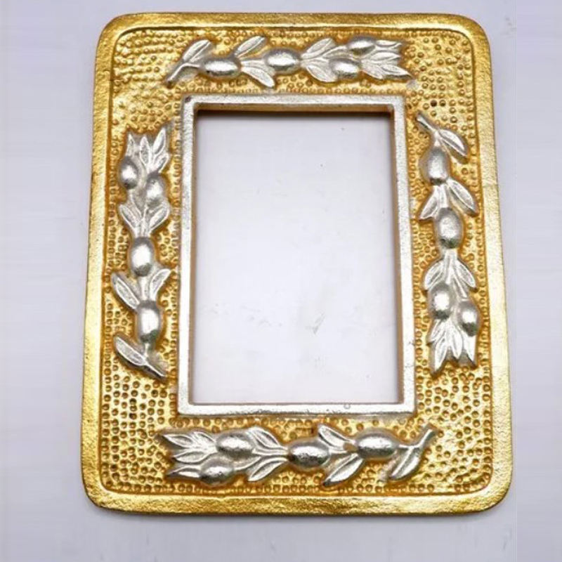 Metal Brass Embossed Rectangular Handmade Photo Frame Gold Finish Desk Organizer and Hanging Modern Design