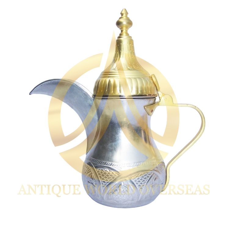 High Quality Brass Metal Turkish Dallah Coffee Pot with Lid Unique Tabletop Design India Coffee Tea Accessories