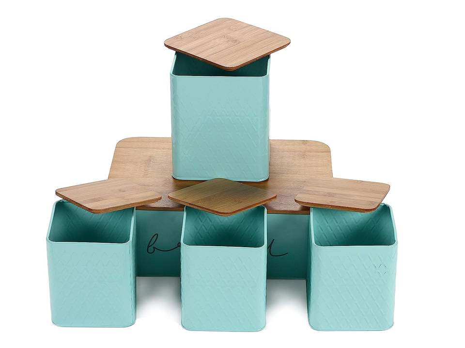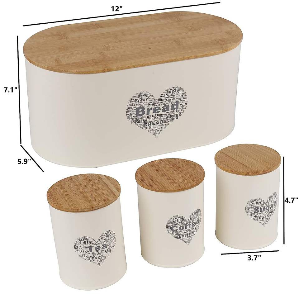 Metal Bread Box Bin Container Set of 4 Bread Bin Tea Coffee Sugar Tin Canister Set for Home Kitchen