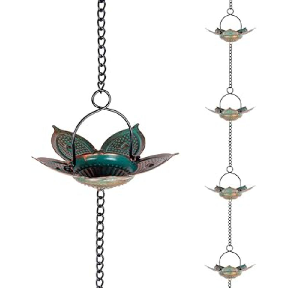 Metal Butterfly Rain Chain Blue Lotus Cup Gutter Downspout Alternative Decorative Garden Rain Catcher For Eaves Drainage
