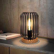 Metal Cage LED Bedside Table Lamp Wooden Base Desk Lamp High Decorative Bedside Lamp with Edison Bulb for Bedroom Living room