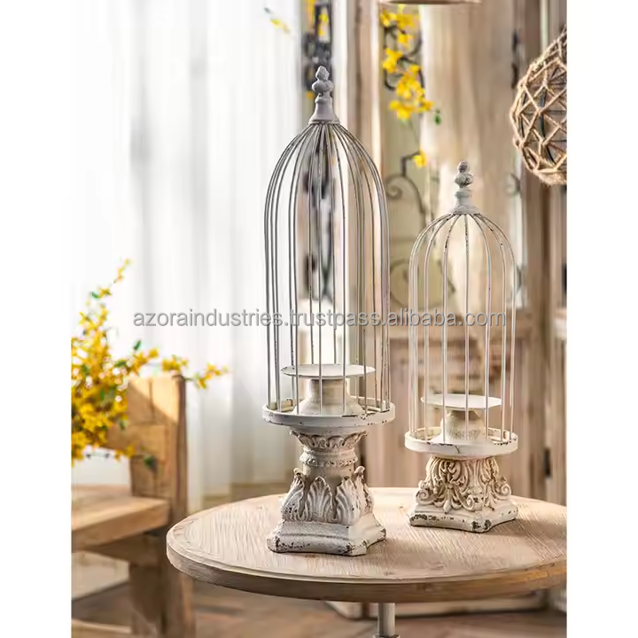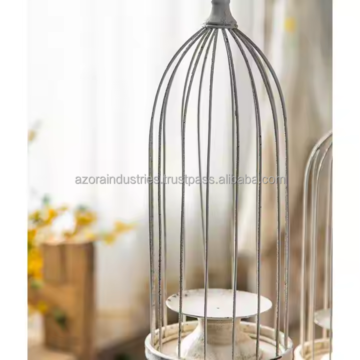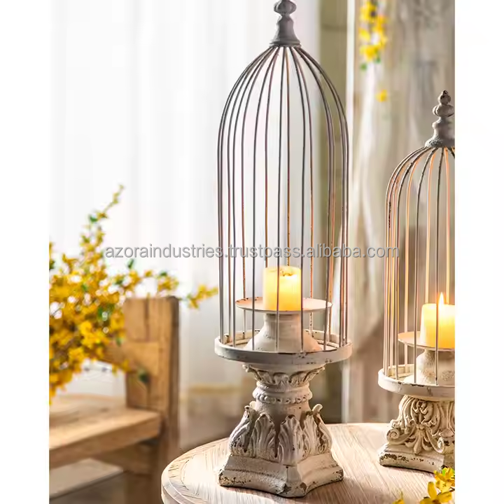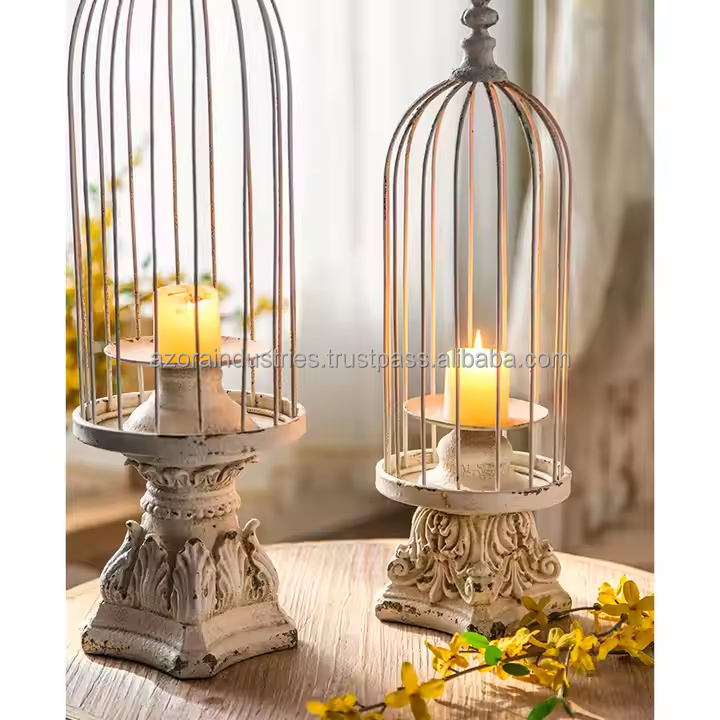 Metal Candle Holder Cage Candle Holder White Candlestick Lantern Wedding Party Light