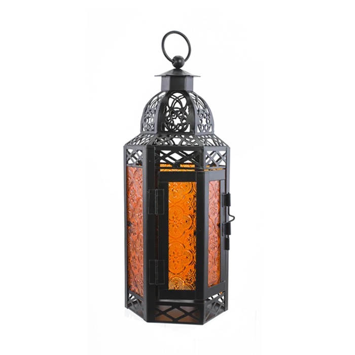 Metal Candle Lantern Candle Holder Lanterns and Candle Holder Outdoor Christmas Colorful Glass Lantern