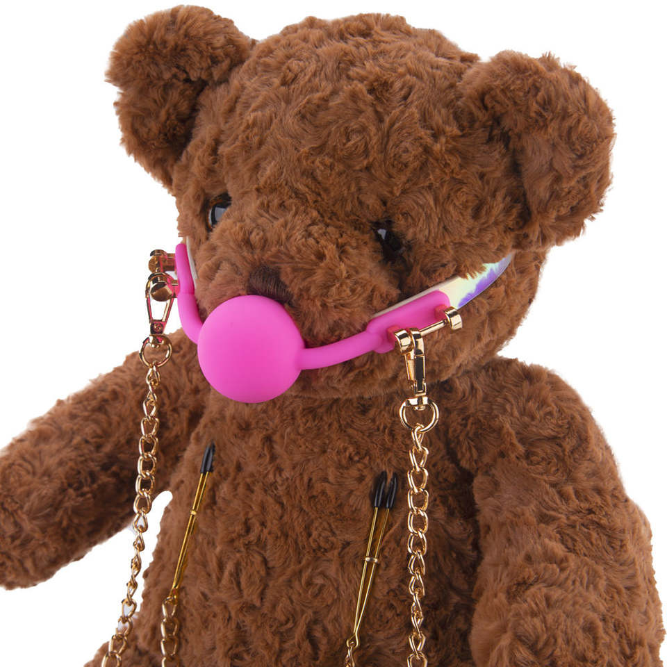Metal Chain Chest SM Belt Bondage Gear Plastic Breathable Open Ball Gag with Nipple Clip