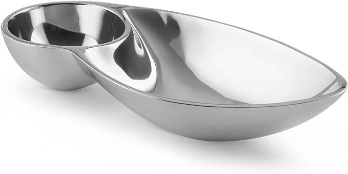 Metal Chip and Dip Dish Serving Platter Serveware With Sauce Bowl Snack Tray Dish Gold Bowls and Centerpieces Table Decoration