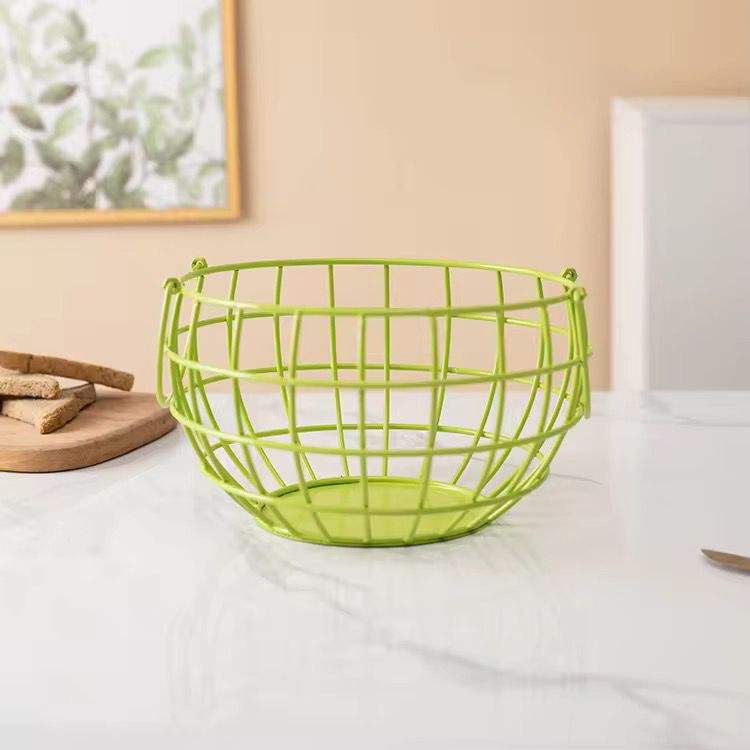 Metal Circle Fruits Basket with Eco-Friendly Handle for Elegant Home Use Artisan Finished Large Storage and Fine Craftsmanship