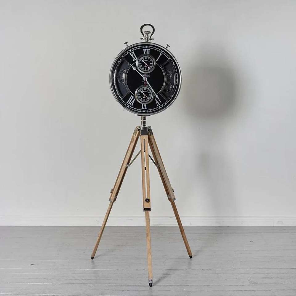 Metal Clock With Adjustable Tripod Stand Living Room Decoration Floor Display