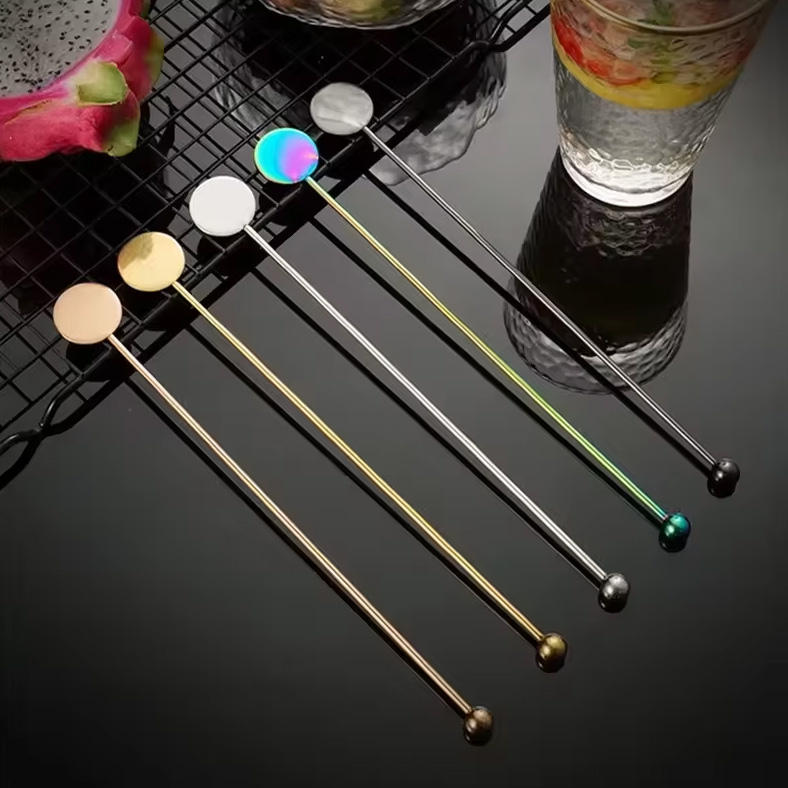 Metal Coffee Stirrers Reusable Stainless Steel Cocktail Stirrers with Tropical Decor for Beach Party Mixed Drinks for Bar Use