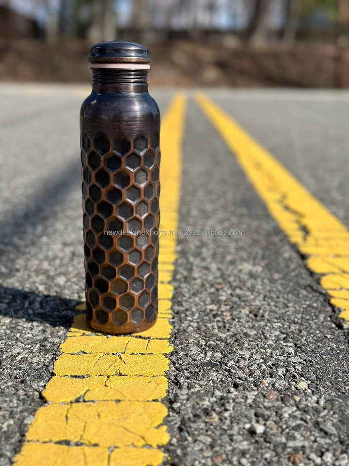 Metal Copper Drinkware Antique Black Diamond Water Bottle with Lid for Hiking Camping Home Office Gym Travel Outdoor Activities