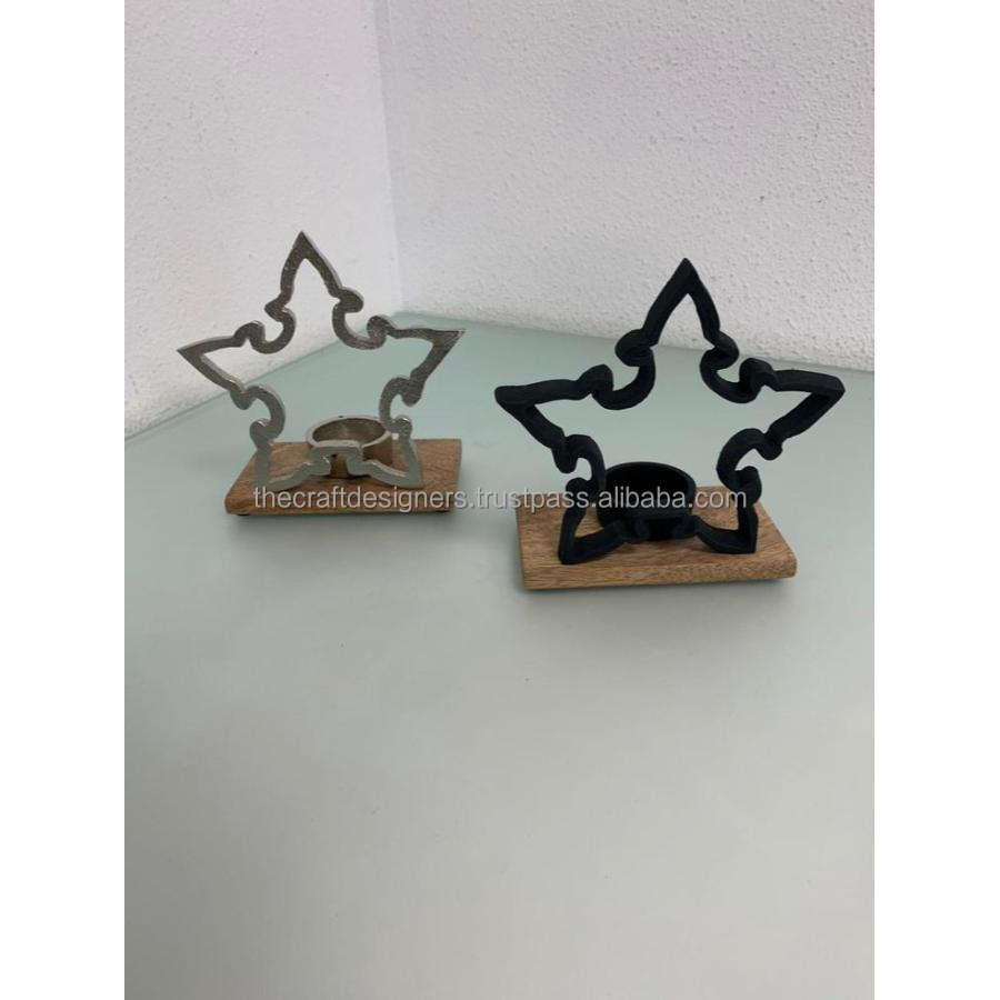 Metal Crafts Decorative Twinkle Stars Ornament Candle Holder Wood Base Portable Eco Friendly Christmas Decorative Objects 2025