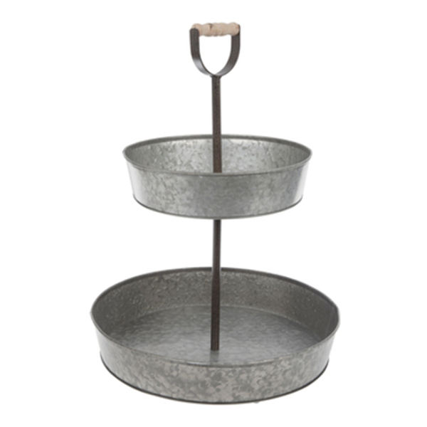 Two Tier Galvanized Cake Stand Tabletop Cake Stands Metal Decorative Fancy Designer Cake Stand Wooden Handle