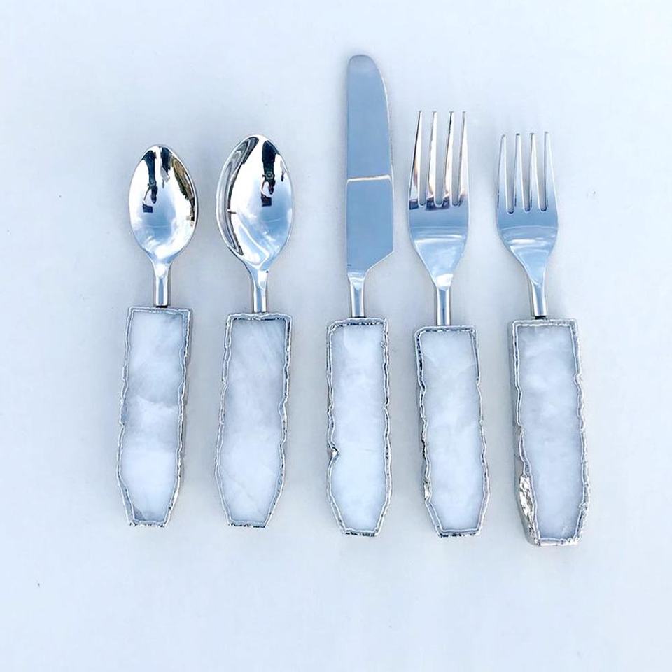 Metal Decorative Handmade Tableware Sets Gold Stainless Steel Tableware White Resin Handle Cheese Set