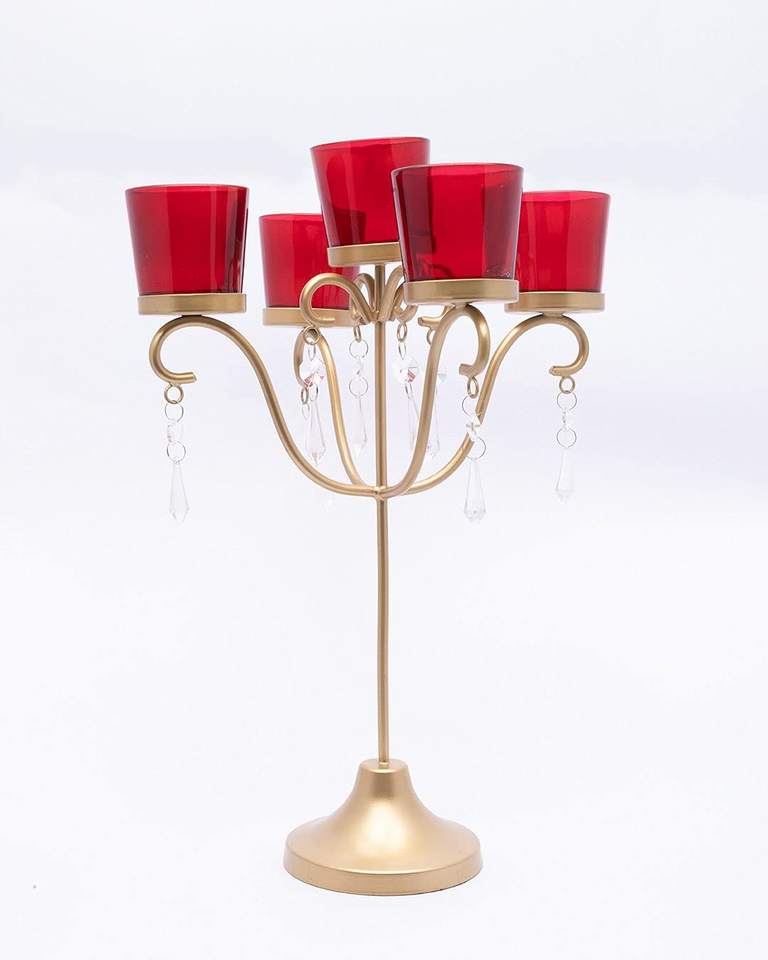 Metal Designer Candlestick Light Holder Gold Glass Candle Red Votive for Home Decoration Dining Table Indoor Outdoor