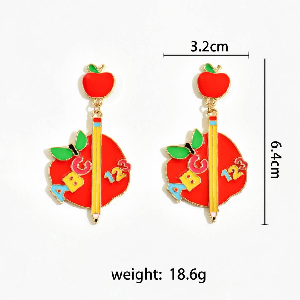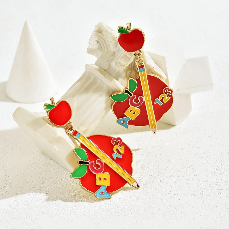 Metal Drop Oil TEACHER Apple Pencil Earrings Back-to-school Graduation Teachers' Day Gift for Women Uionen 1797