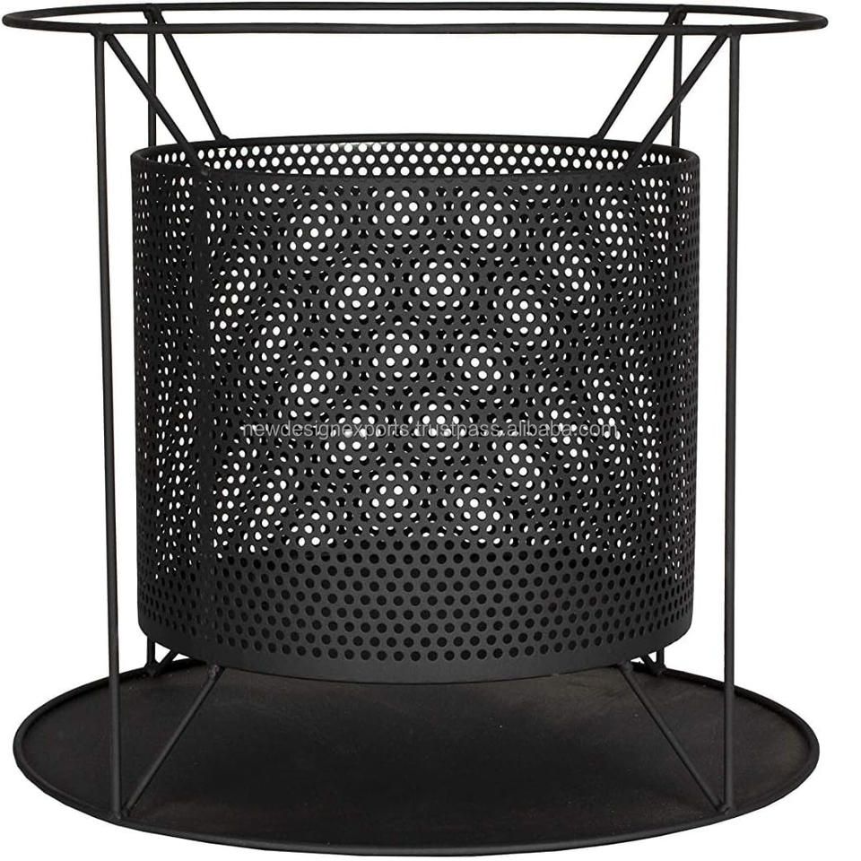 Metal Fire Pit with Spark Screen, Black, Perforated Design, Round Outdoor Fire Bowl with Stand A5