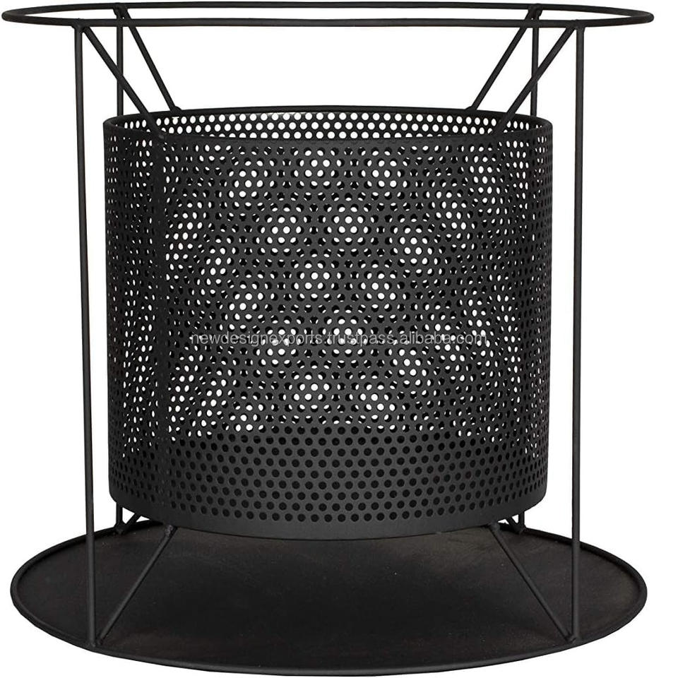 Metal Fire Pit with Spark Screen, Black, Perforated Design, Round Outdoor Fire Bowl with Stand A1