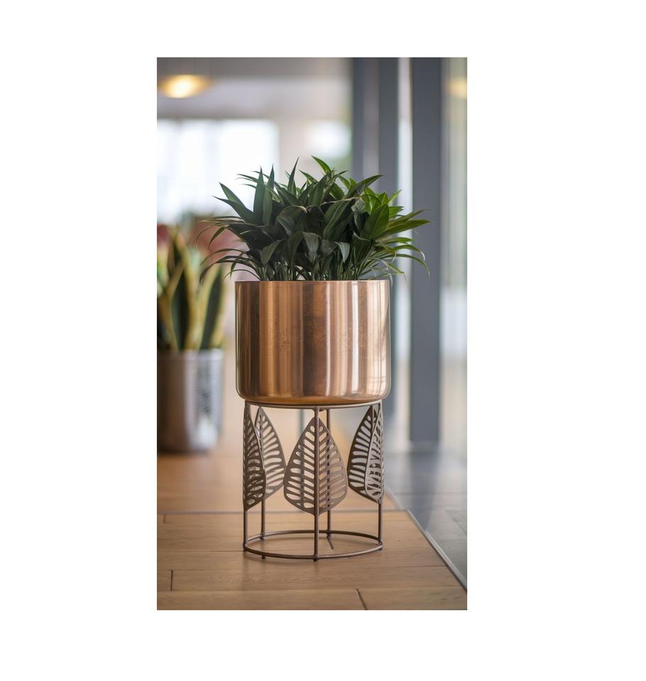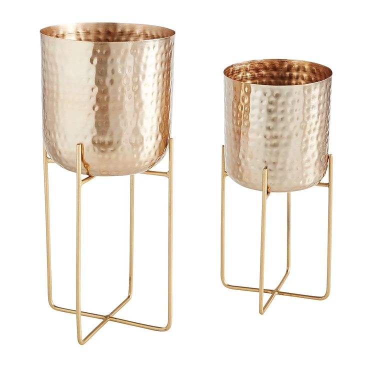 Metal Floor Planter on Stand in Brass Hammered and Aluminium Finish Flower Pots for Home Decoration Metal Crafts