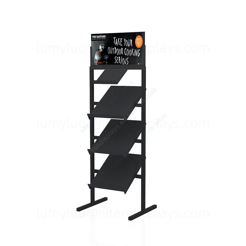 Metal Floor-standing Fry Pan Display Rack Cookware Retail Merchandiser Stand for Supermarket Kitchenware Store