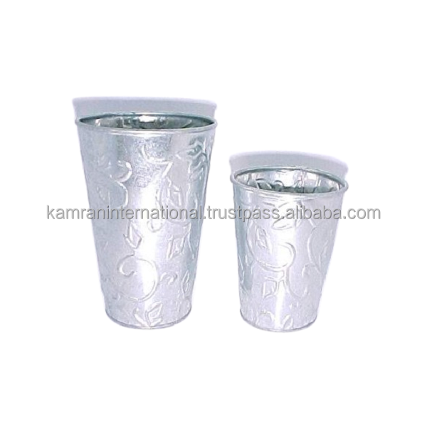 Metal Flower Planters Designer Plant Set of 3 With Wooden Handle for Restaurant Garden Decorative Floral Pot Accessories