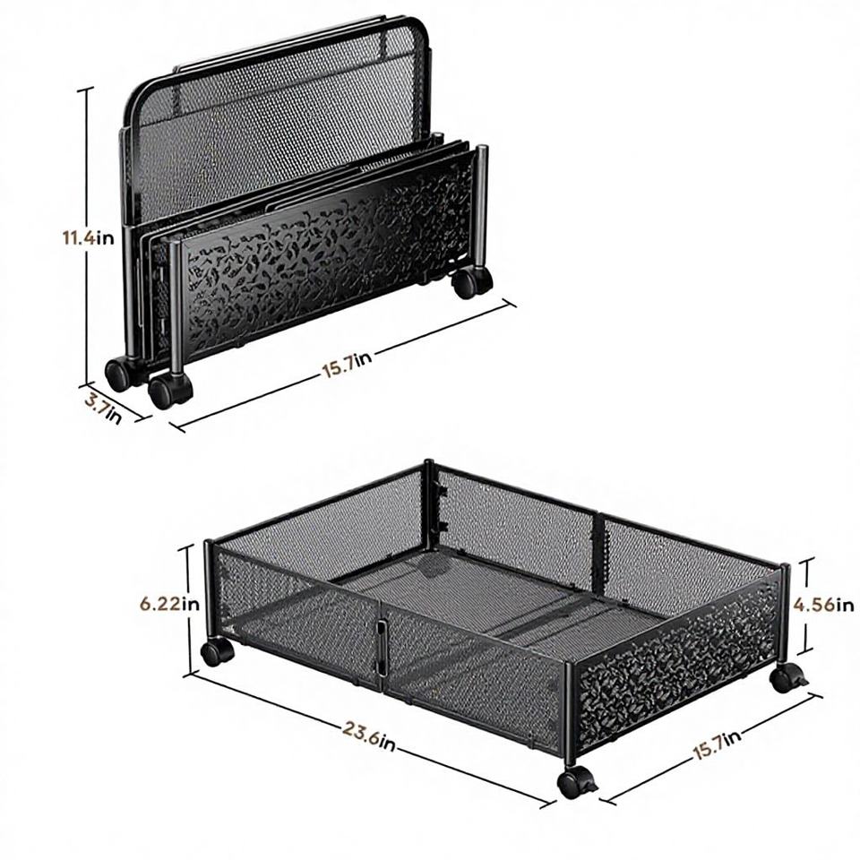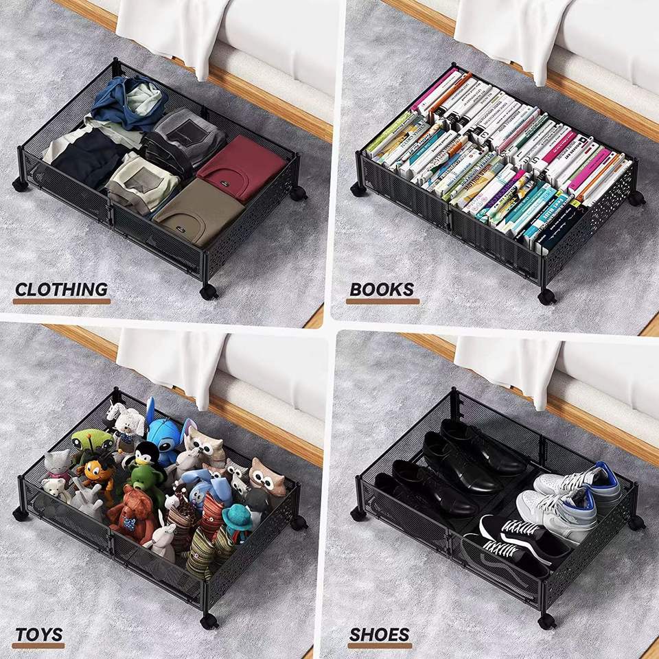 YH Modern Simple Metal Foldable Under Bed Shoe Storage Rack with Wheels for Bedroom Storage