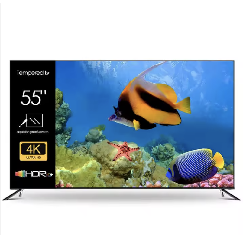 Metal Frame 55" 65" 75" 85" Inch Smart LED TV 4K HDR Shatterproof Glass HDTV with Android OS and Built-in Speaker