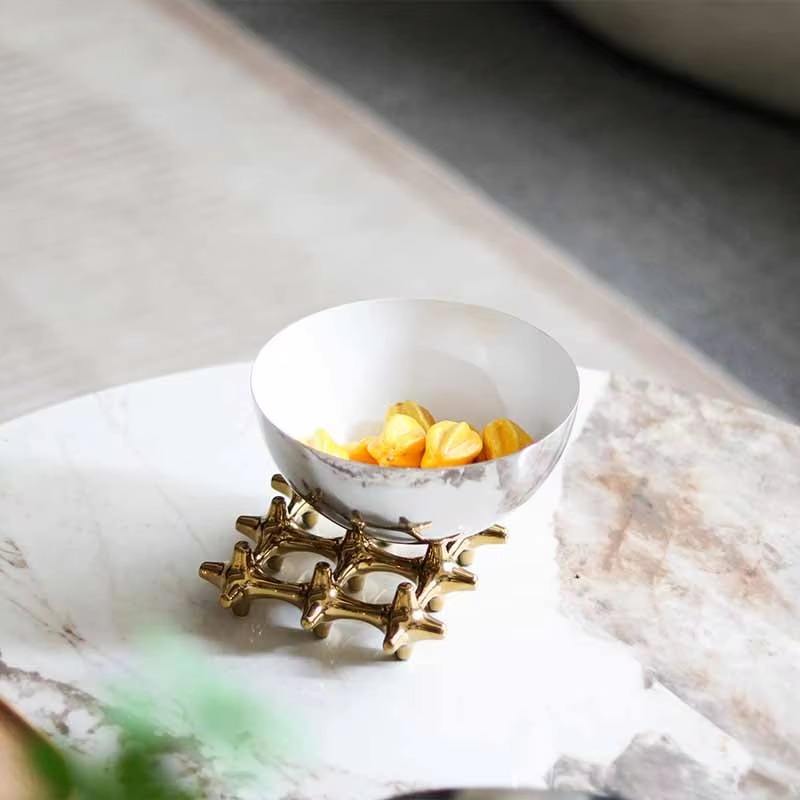 Metal Fruit Bowl Light Luxury Snack Plate Stainless Steel Serving Tray for Office or Home Desktop Decor