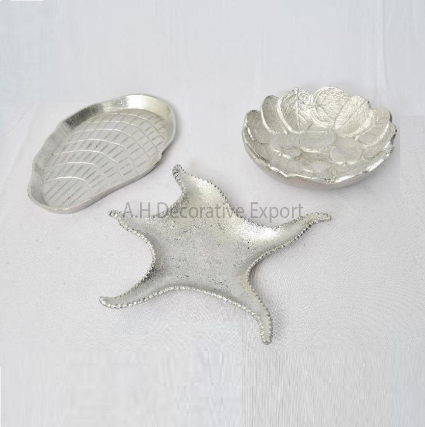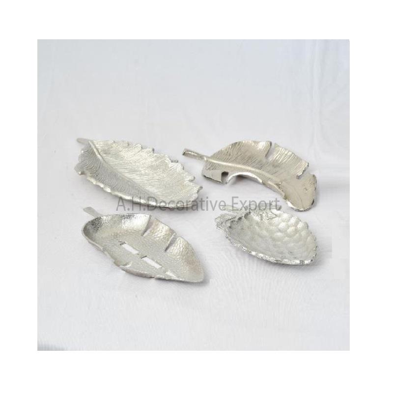 Metal Fruits Serving Bowl Aluminum Silver Finishing Leaf Shape Chocolates Serving Bowl With Set of 4 Pcs for Table Decoration