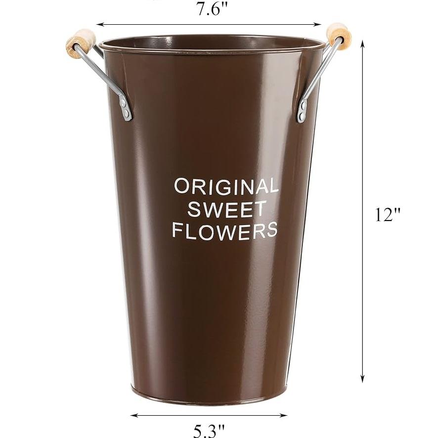 Metal Galvanized Flower Vase French Bucket With Handles Rustic Flower Bucket Pots For Home & Wedding Vintage Style Decoration