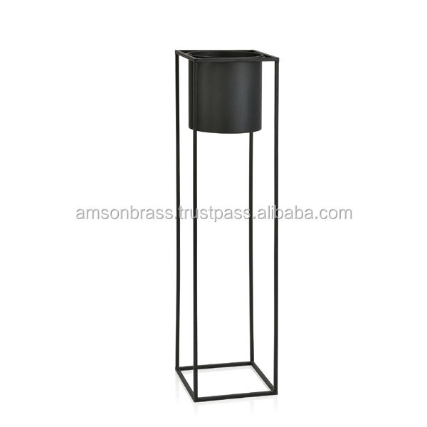 Metal Galvanized Grey Square Metal Indoor/Outdoor Modern Design Indoor Living Room Hammered Pot Gold Metal Planter with Stand