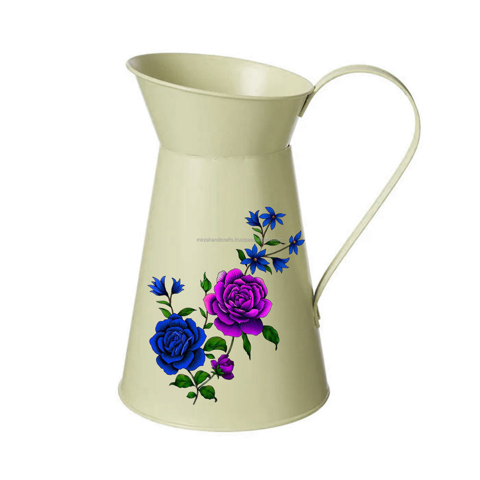 Metal Galvanized Iron Enameled Floral Pitcher Kitchenware and Dining Ware Water Serving Jug Birthday Gift Anniversary G