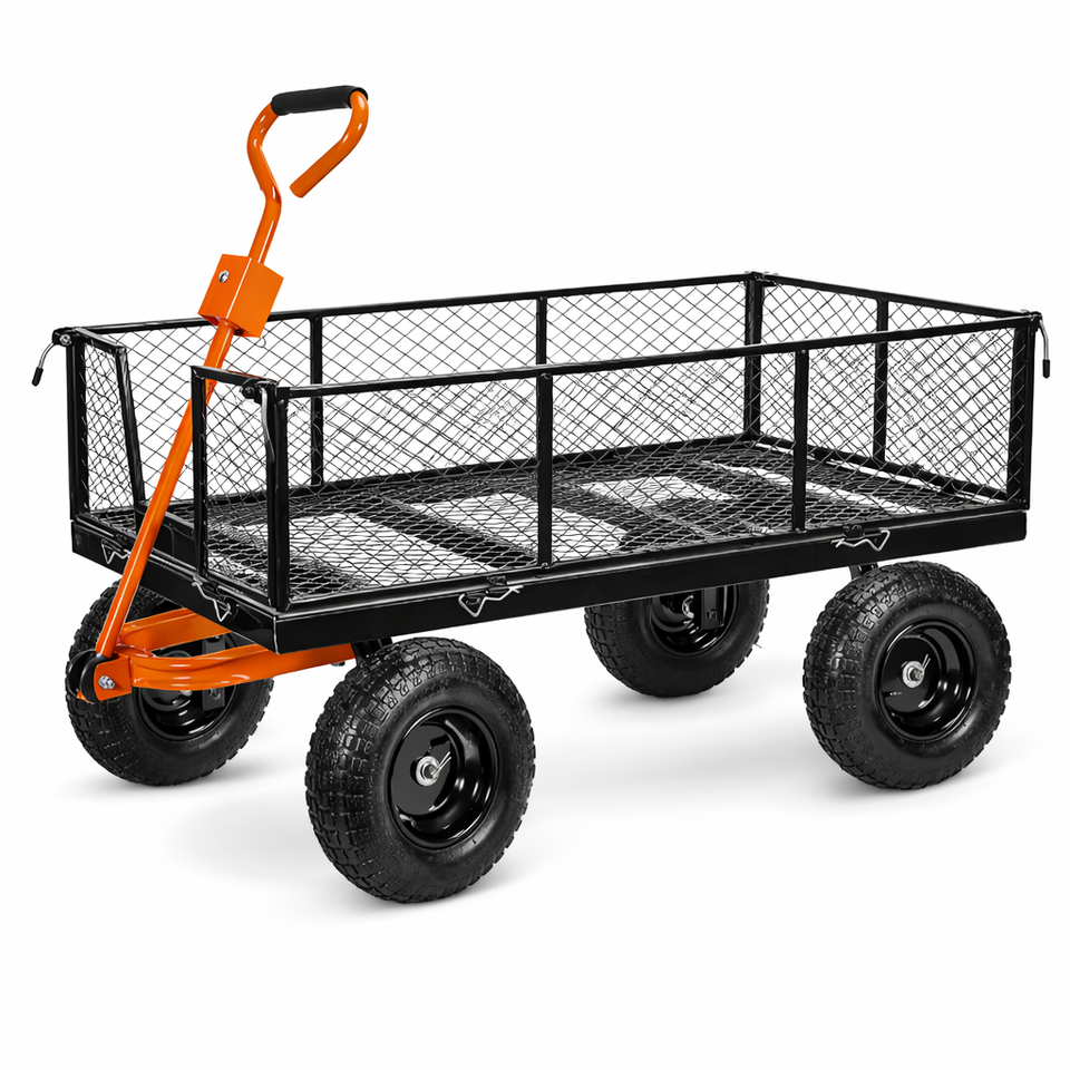 Metal Garden Yard Cart 1200lb Capacity with Removable Mesh Sides 10" Pneumatic Tires Perfect For Garden, Farms, Garage ODGGAR049