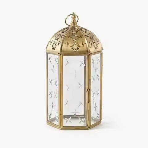 Metal Glass Gold Large Moroccan Lantern Floor Lighting Decor Tall Vintage Designer Pillar Holder Lantern
