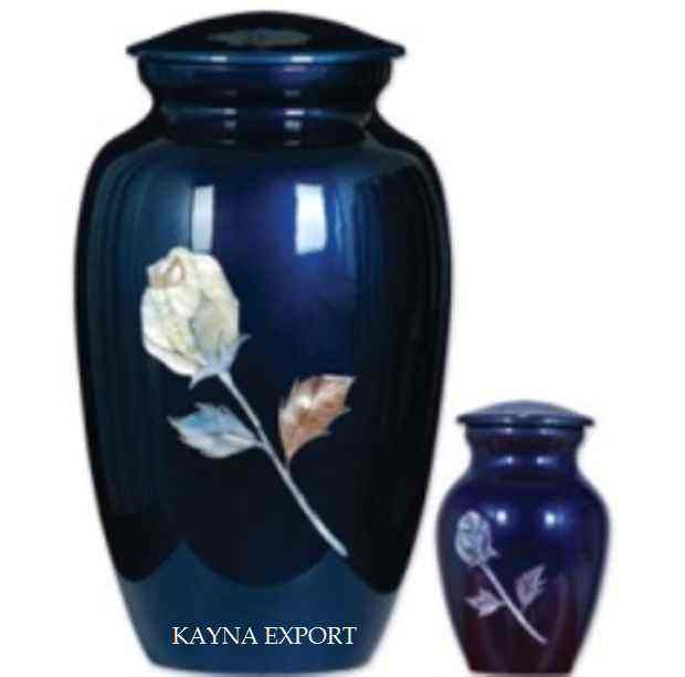 Metal Glossy blue color urn new design aluminum cheap cremation urn for sale latest design funeral supplies metal urn