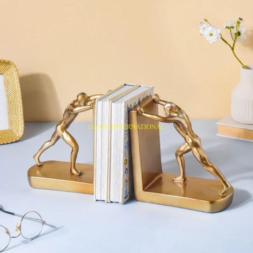 Metal Gold Human Figure Bookend Set Abstract Sculptural Push Design Decorative Heavy Duty Book Holder Office Shelf Organizer