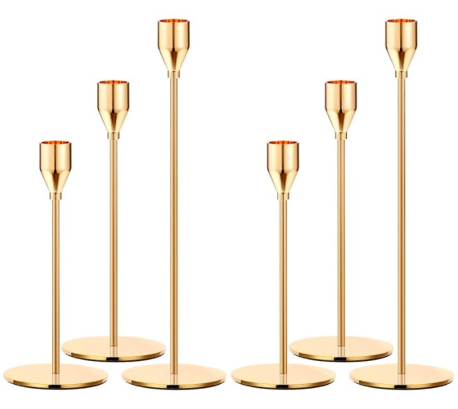 Metal Gold Taper Candle Holder for Wedding, Dinning, Party, Fits 3/4 Inch Thick Candle & Led Candles