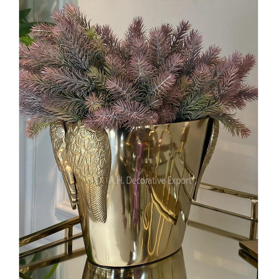 High Quality Aluminium Flower Pots with Gold Metal Wings Handle Best Price Christmas Tabletop Vase Decoration Direct Sale
