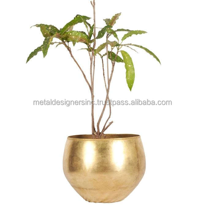 Golden Metal Round Floor Vase Planter Pot for Indoor and Outdoor Home and Garden Decoration Flower Pots & Planters