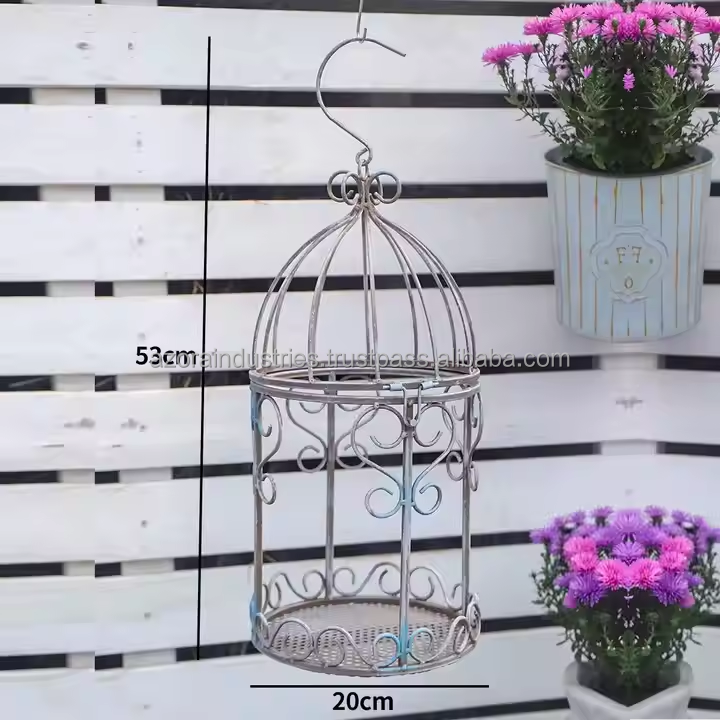 Metal Hanging Planter Basket With Round Wire Plant Holder With Chain Decorative Flower Pots Hanger for Garden Metal Flower Stand