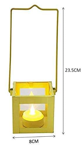Metal Hanging Tealight Lantern with Glass Panels Yellow Decorative Candle Holder for Home Garden Patio Parties and Outdoor Event