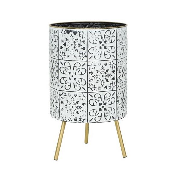 Metal Iron Planter Pot With Stand for Home Indoor Outdoor Decorative Planter Set of 2 Modern Design White Finished