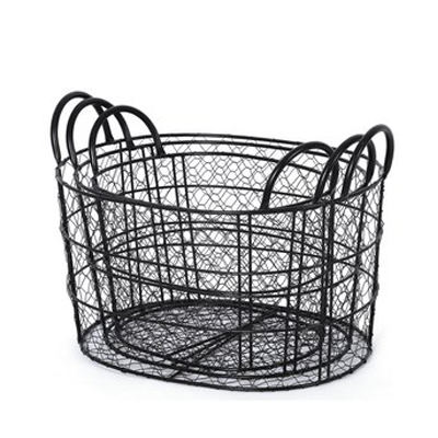 Metal Iron Wire Black Basket & Bowls with Bamboo Rim - Set of 3, Kitchen Utensil Basket, Countertop Basket, Farmhouse Basket