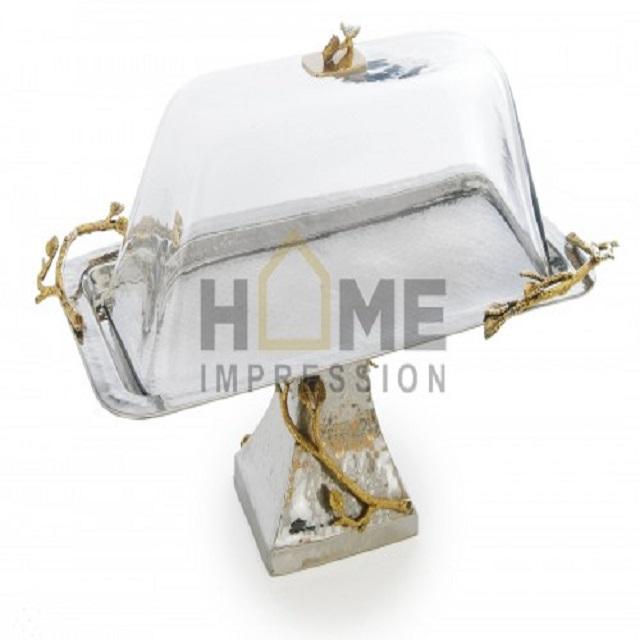 Metal Leaf Gold Branches Cake Stand With Glass Base Designer Cake Stand