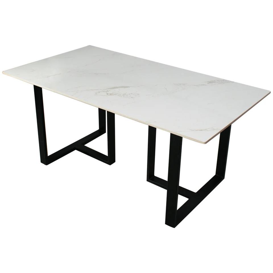 Metal Legs, Rectangular Marble Dining Tables for Living Room Dining Room, Metal Frame, Black/White