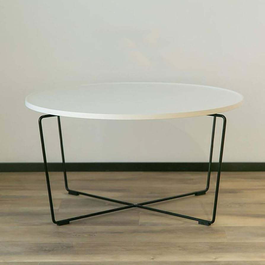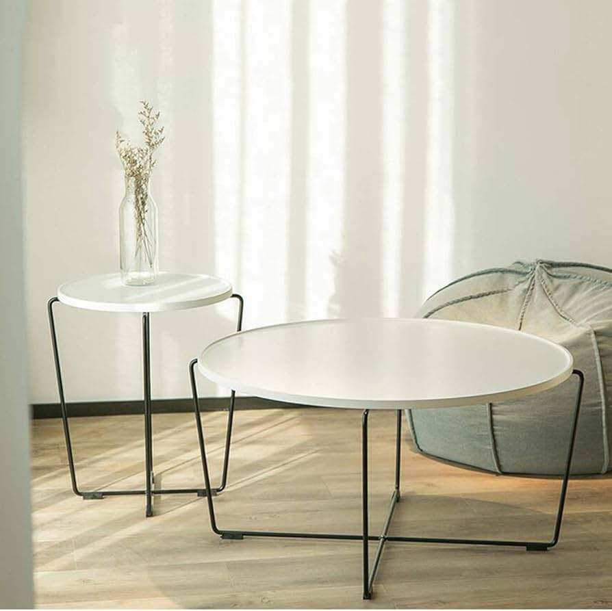 Metal Living Room White Marble Coffee/End Table - Modern Simplicity Irregular Black Metal Tempered Frame