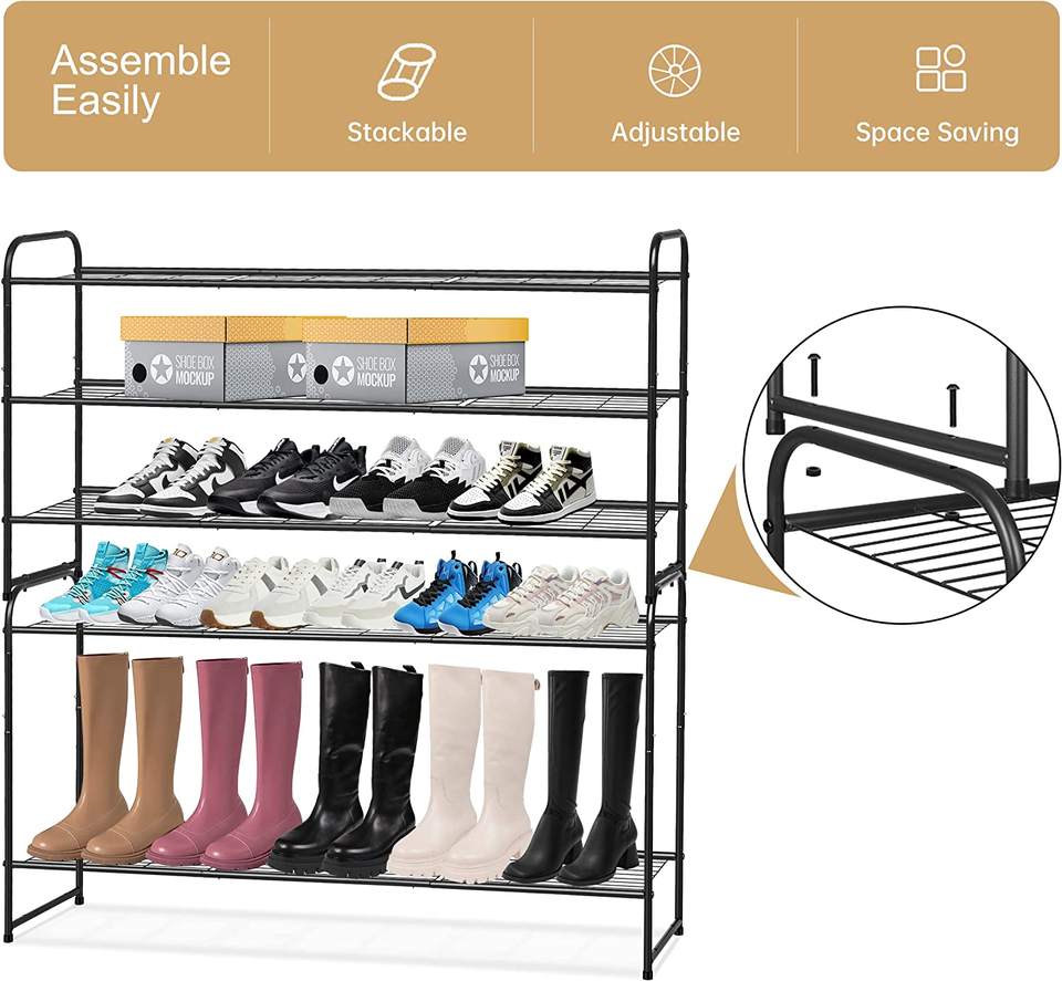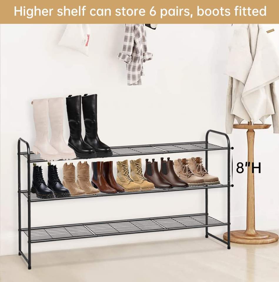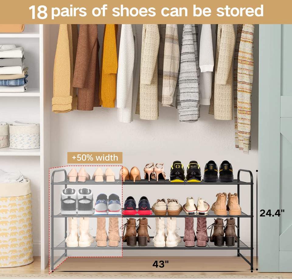 Metal Long Shoe Rack for Closet Shoe Organizer for Entryway Wide Stackable Shoe Storage Shelf With Sturdy Wire Grid for Closet
