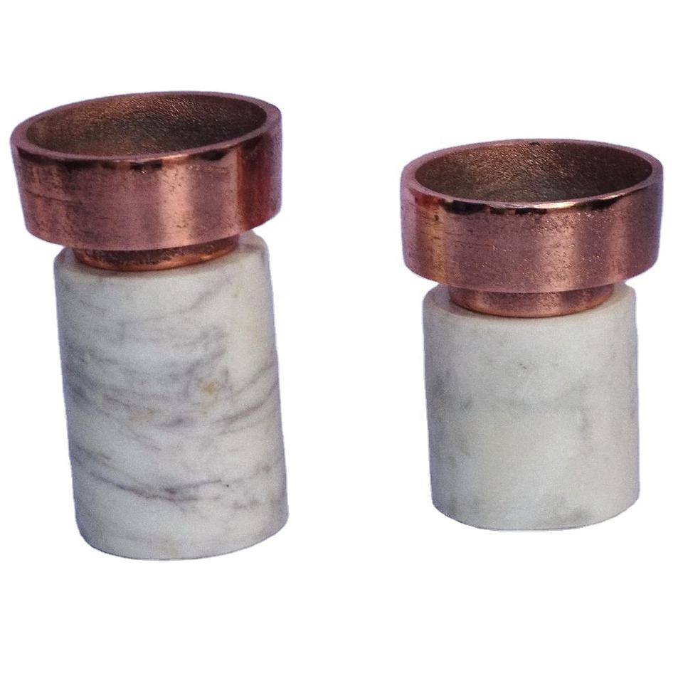 Rose Gold Home Decoration Metal Candle Holder Christmas Ornament Aluminium Cylindrical Pillar Candle Stand for Festive