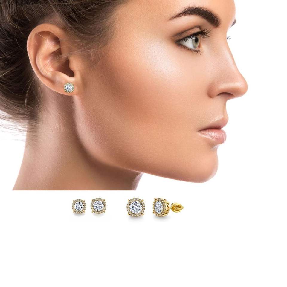 Metal Masters 18K Gold Over Sterling Silver Cute Dainty Halo Round Moissanite Engagement Screw Back Stud Earrings