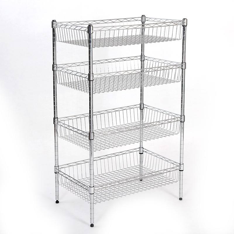 Metal Mesh Rolling Utility Cart Chrome Plating Storage Organizer Basket Shelves With Removable Wheels