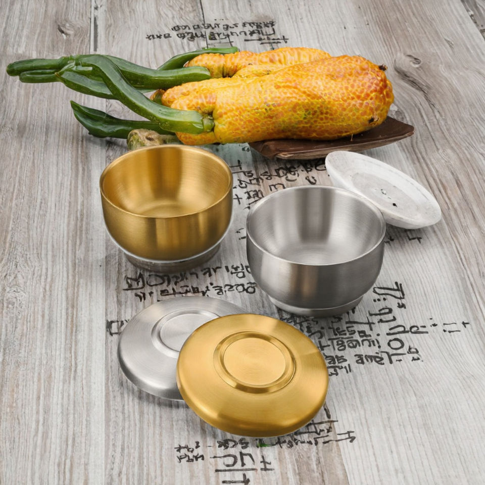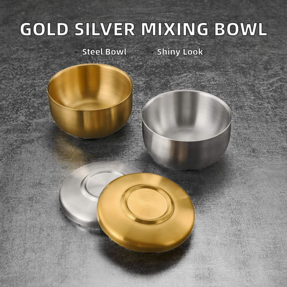 Metal Mixing Serving Bowl Gold Silver Modern Disposable Camping Stainless Steel Rice Bowl with Lids Salad Fruit Dessert Home