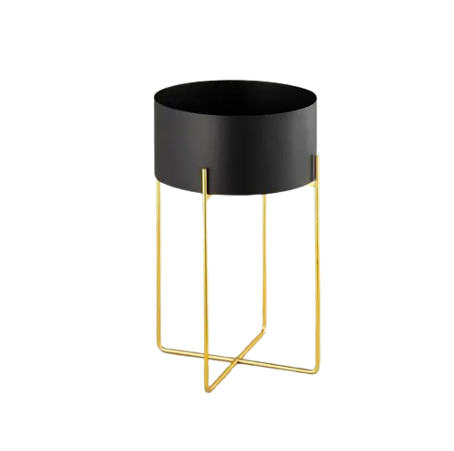 Metal Plant Display Rack Holder Powder Coated Metal Planter Flower Pot With Wooden Stand Desktop Flower Pot Indoor Outdoor Decor